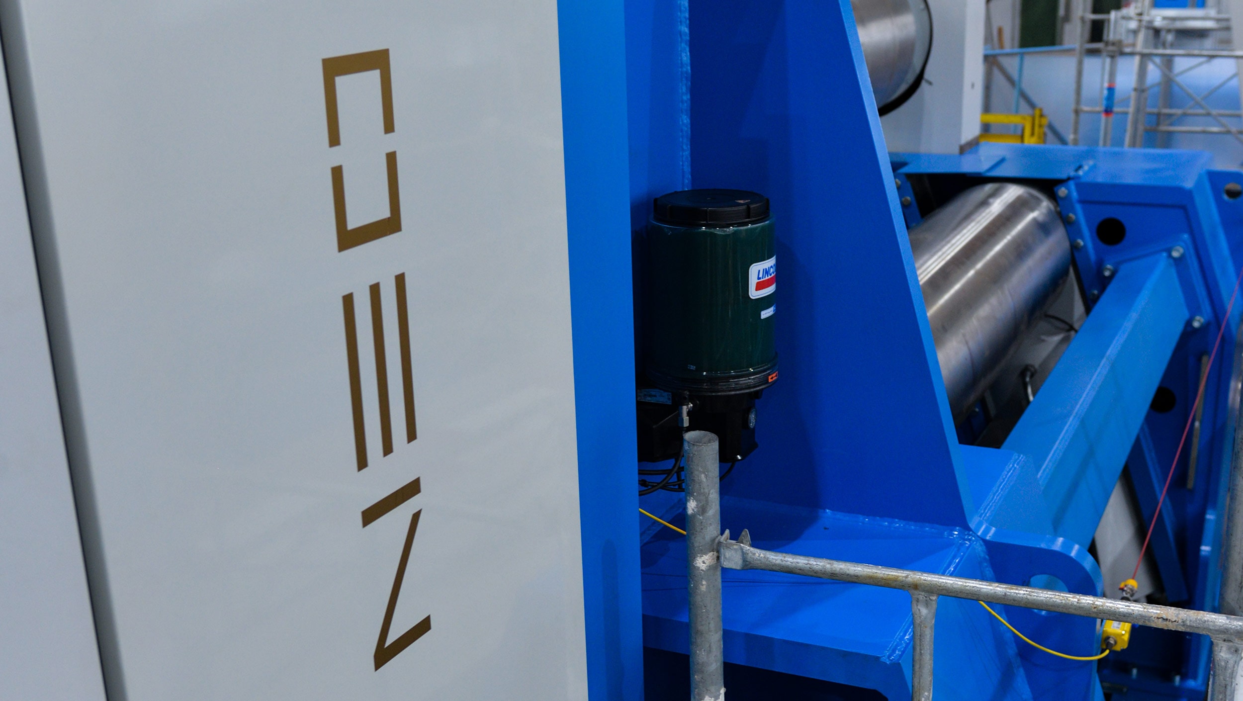 Beim Kalibrierungsvorgang wird der geschweißte Zylinder zwischen Ober- und Unterwalze eingeklemmt. Die Schweißnaht passiert wiederholt die Walzen, wobei der Gasakkumulator die Anpassung der Unterwalze übernimmt und eine Überlastung des Systems verhindert.